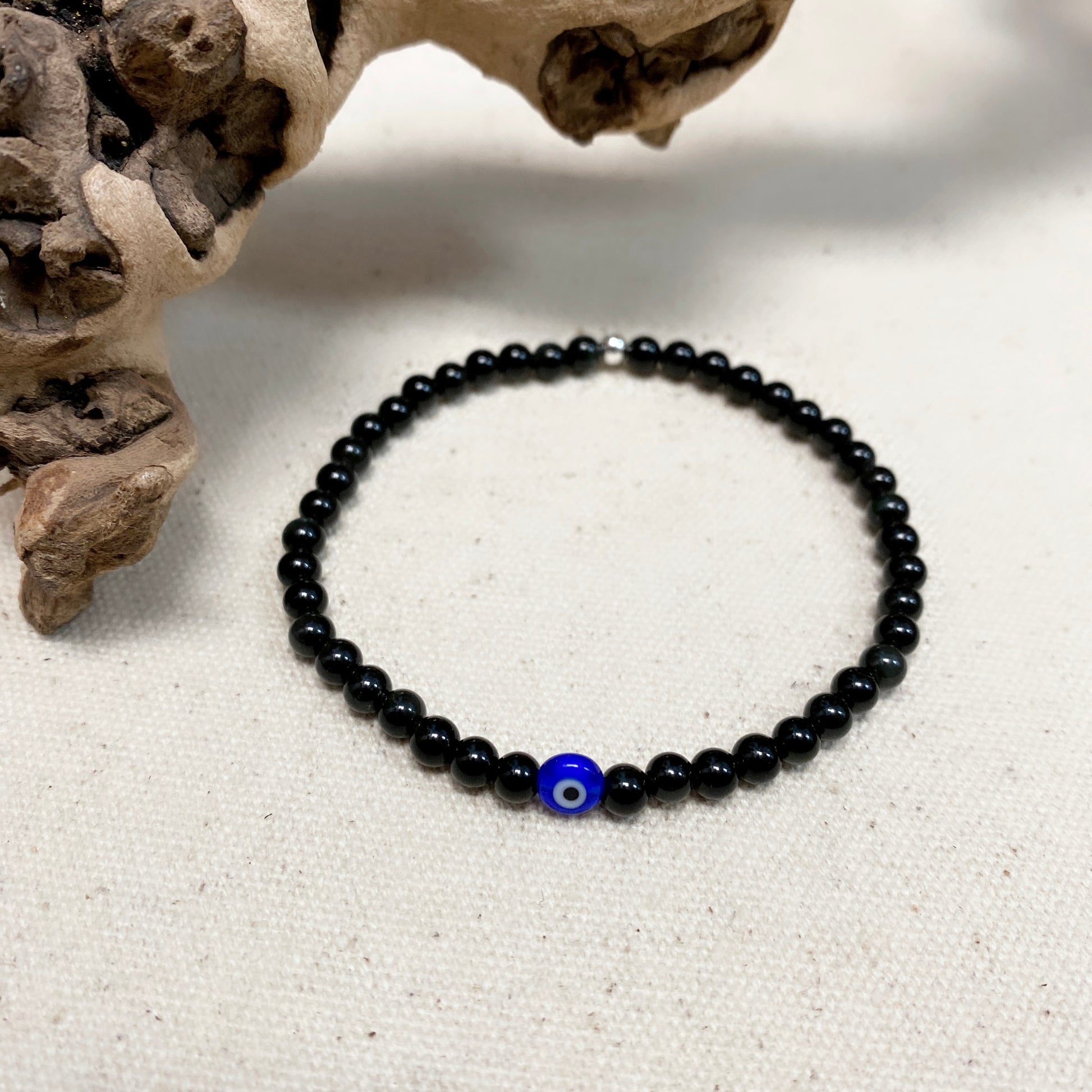 #1 Shiny black onyx 4mm with glass eye (stretch)