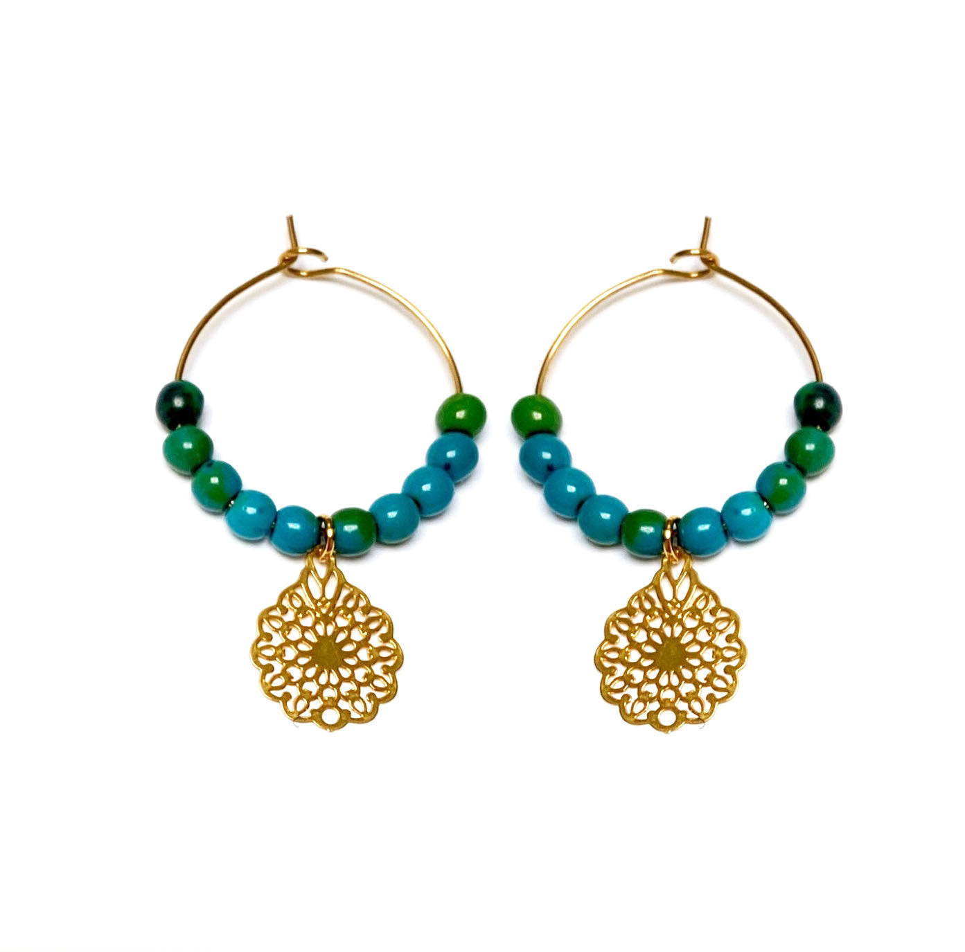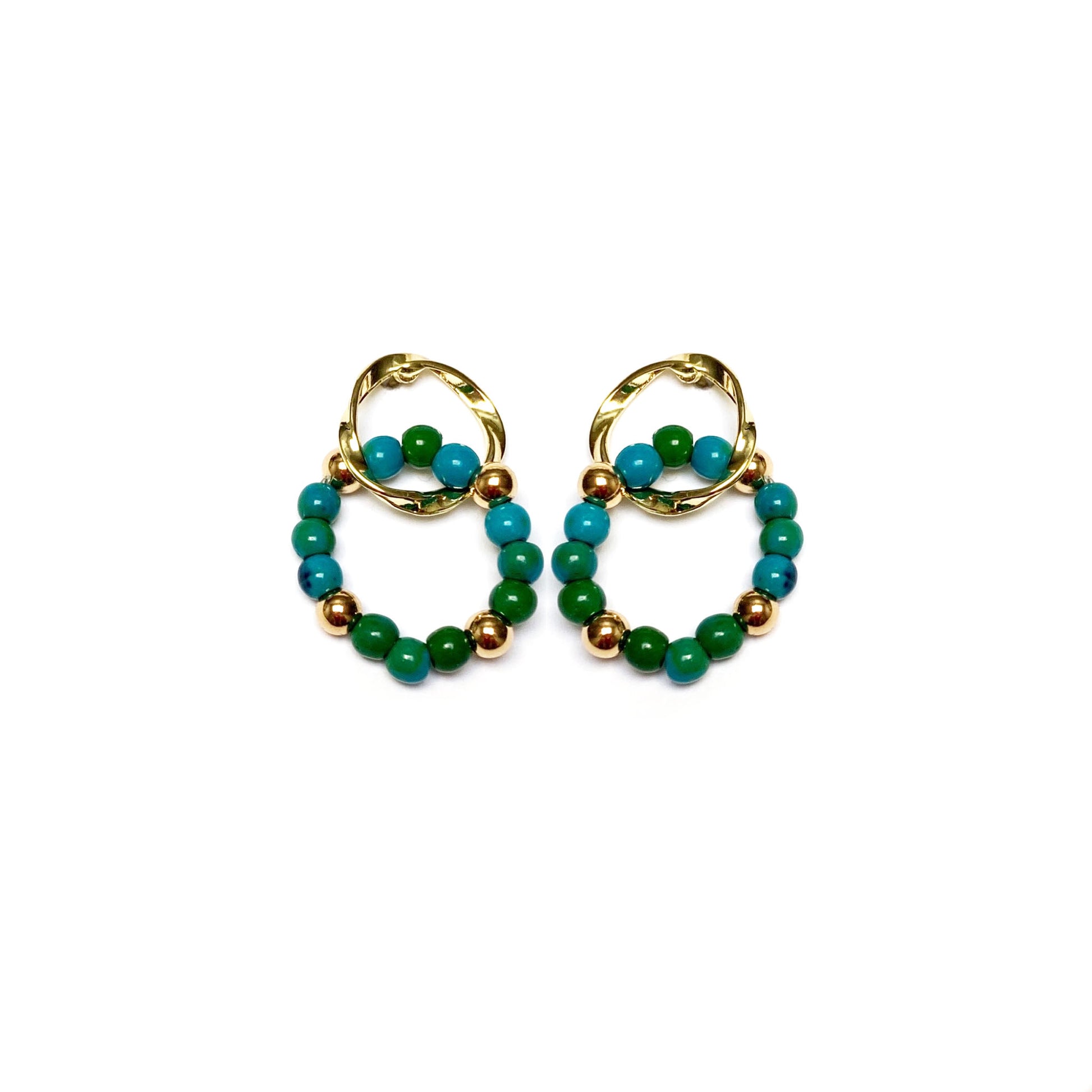 #2 Gold plated hoop & disc with gemstones (1.5 inch drop)