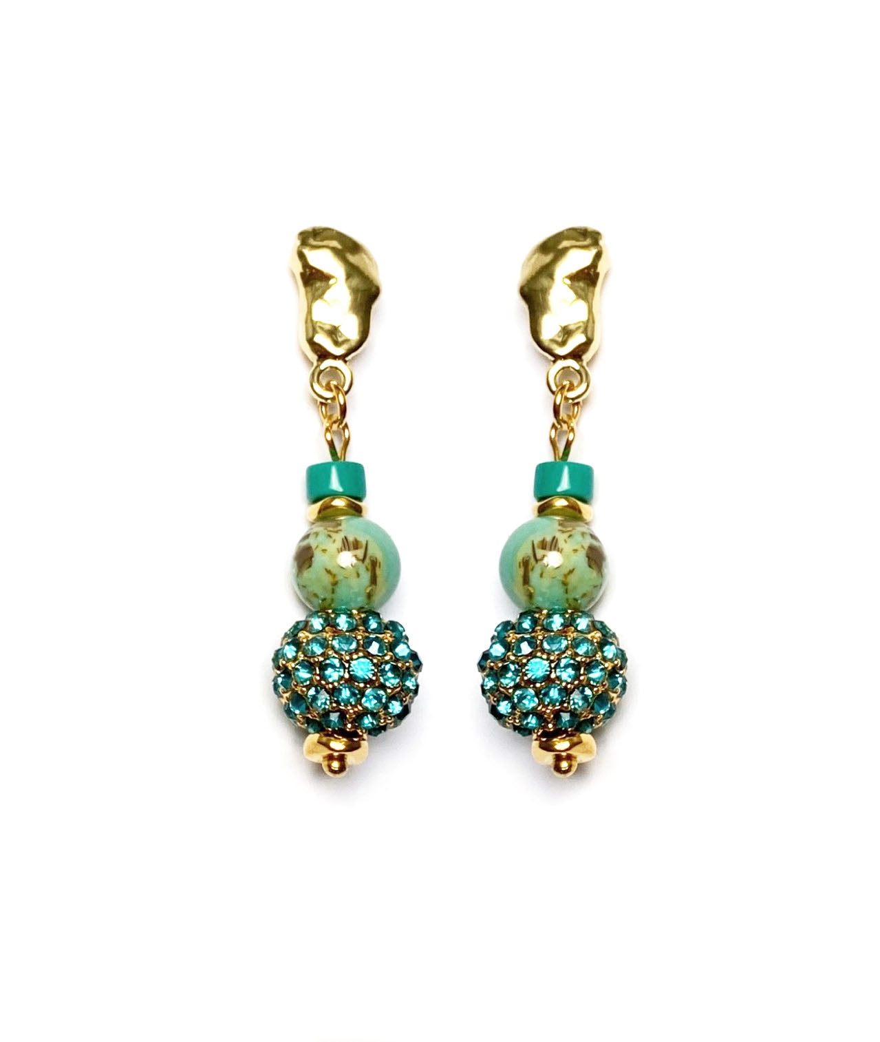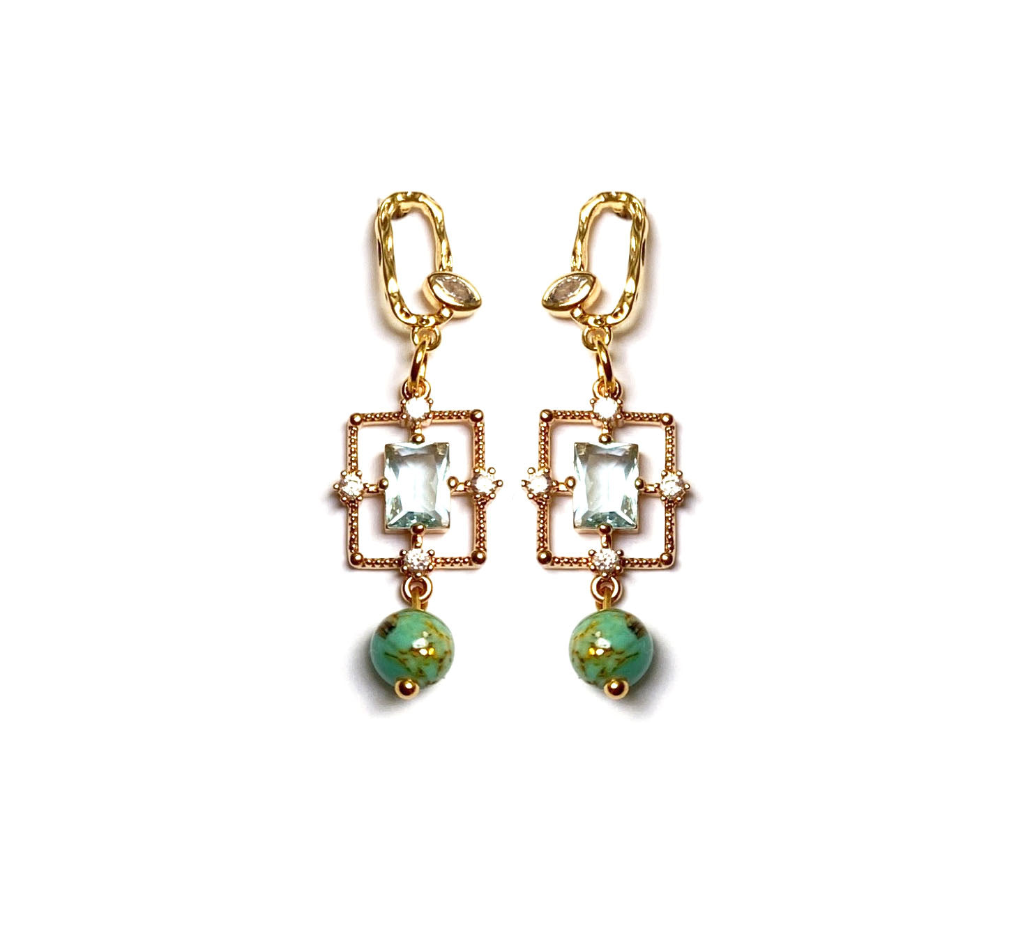 #1 Gold plated rectangle with crystal and gemstones (2 inch drop)