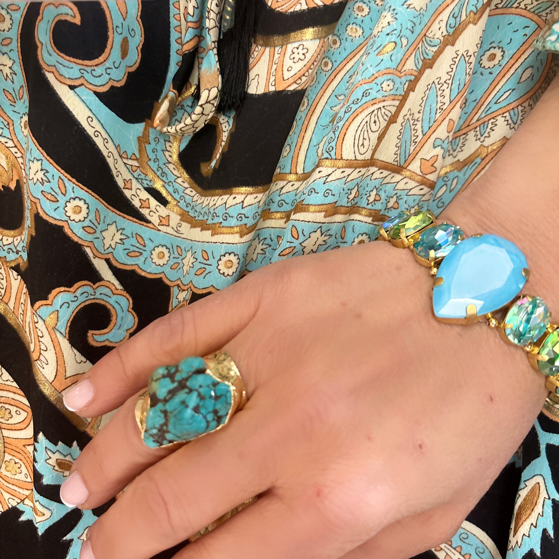 Rock your hand with Henrietta ring! This statement ring features a beautiful turquoise gemstone and adjustable fit for maximum comfort. Make a bold statement with style!