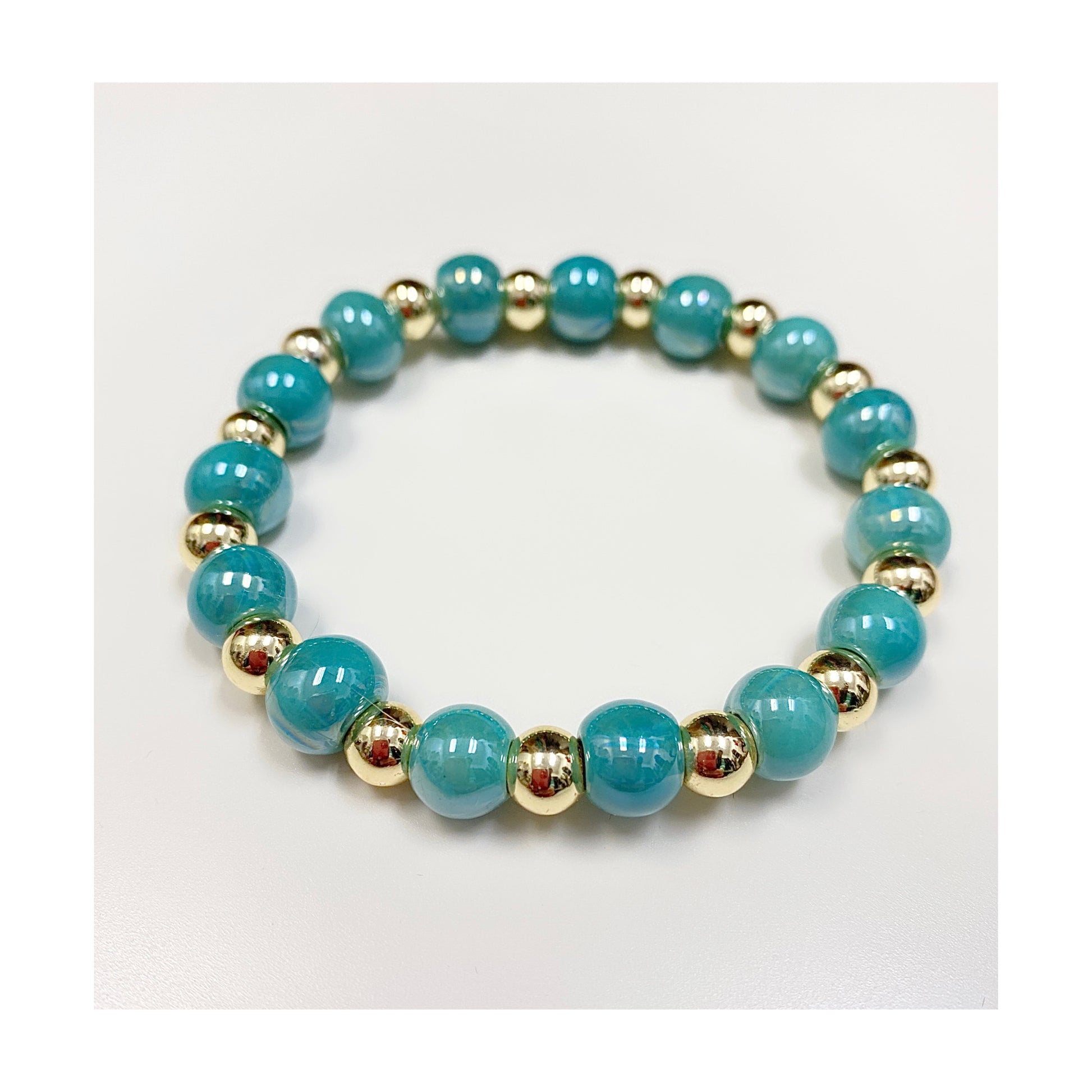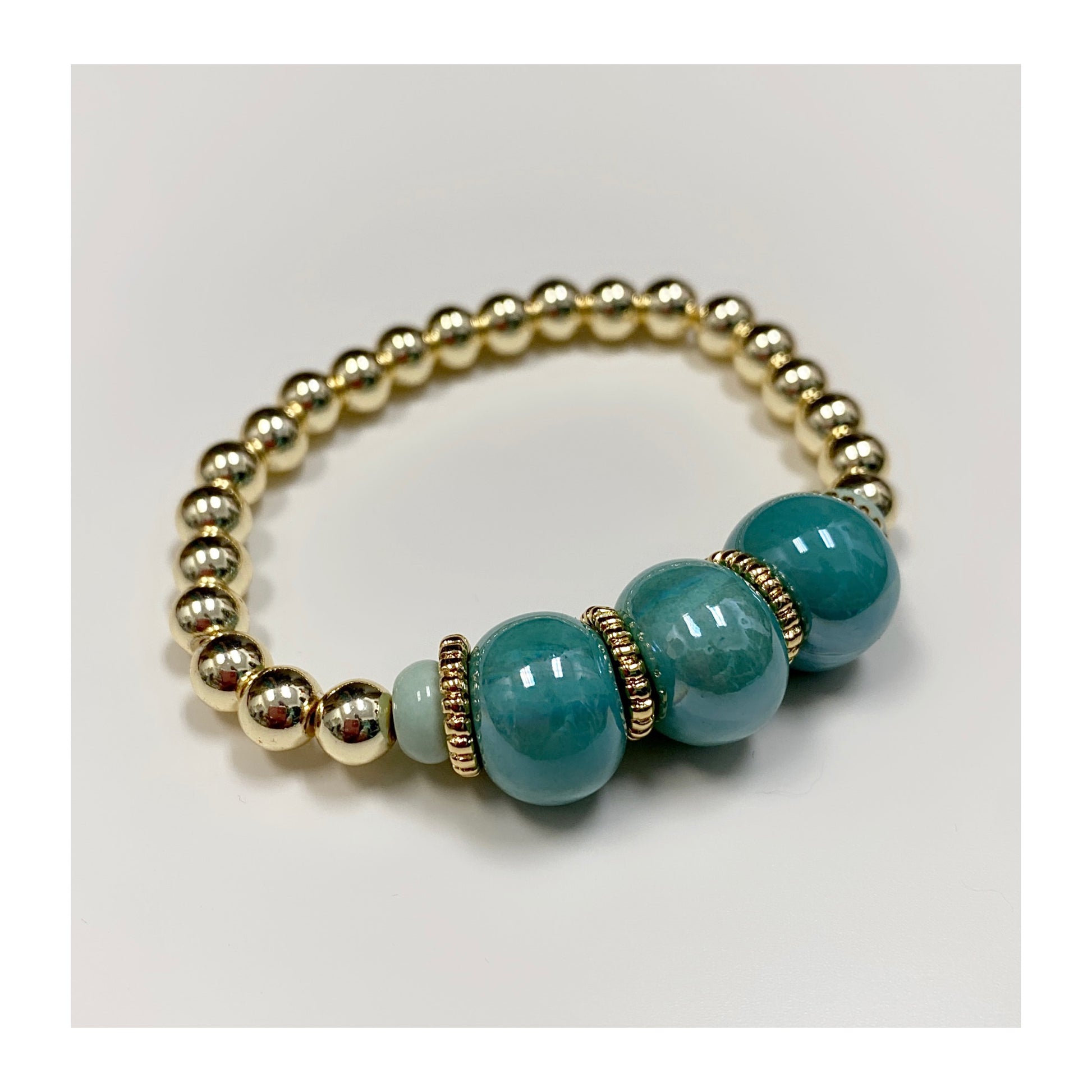 #4- hematite gold plated beads with ceramic beads (stretch)