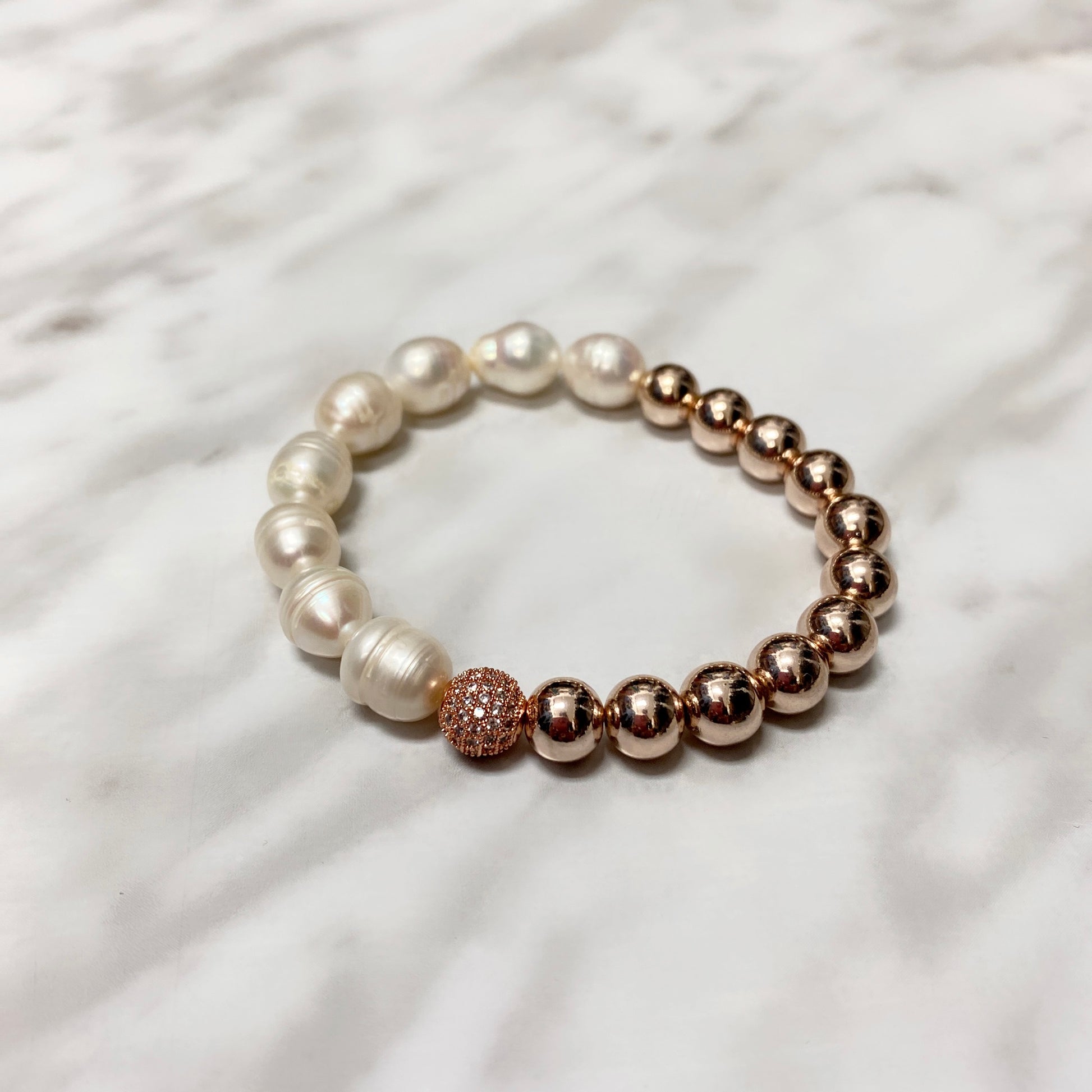 #3 Freshwater pearls and rose gold hematite beads 8mm with round cz bead