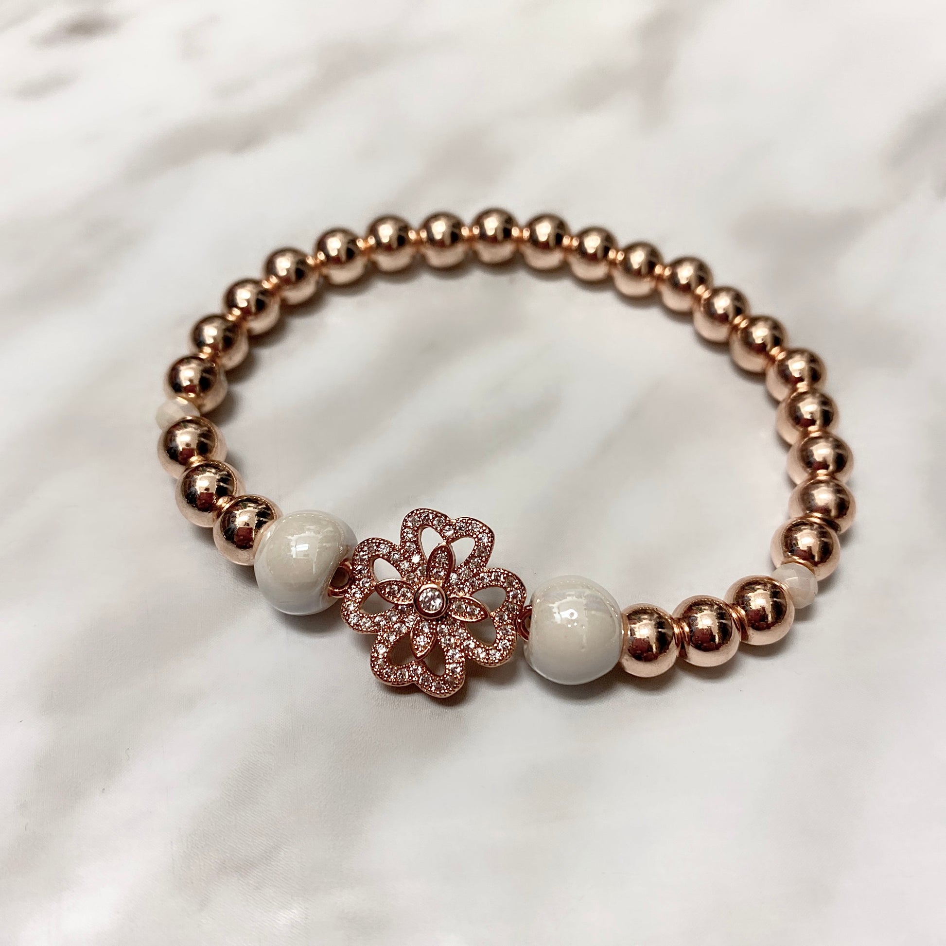 PEARLY WHITE ROSE STACKABLE BRACELETS