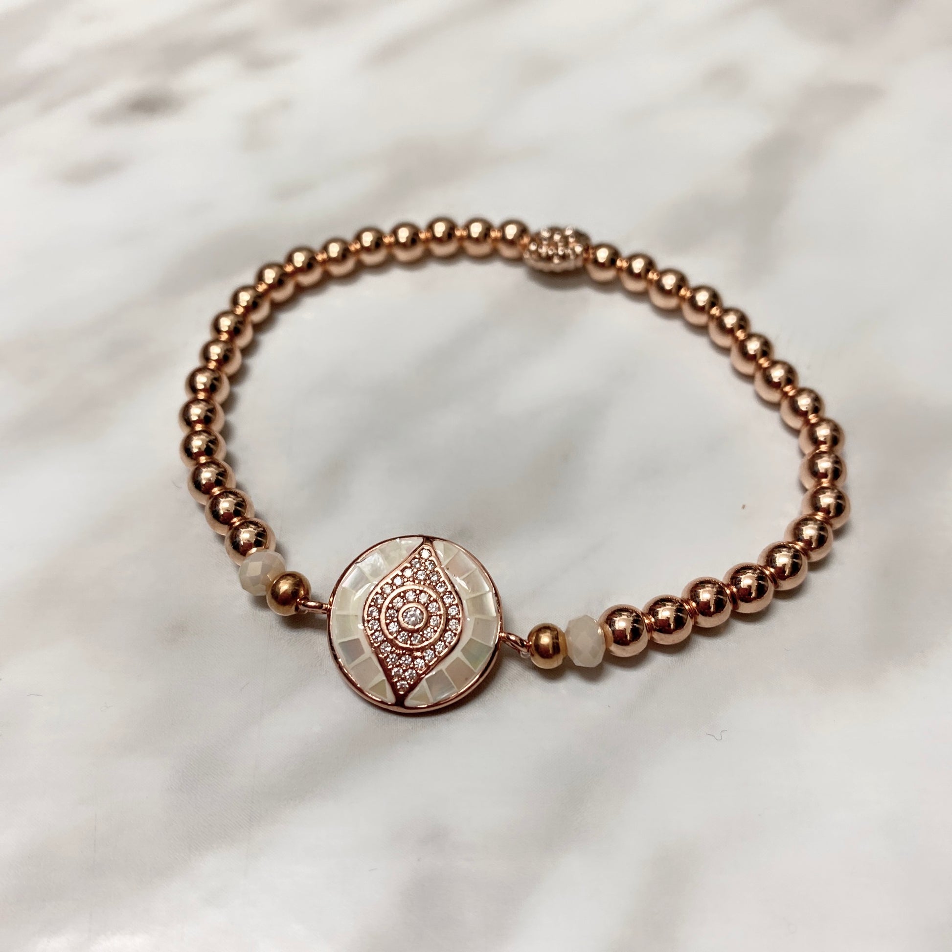 #2 Rose gold plated hematite beads 4mm with ivory crystal beads, stretch
