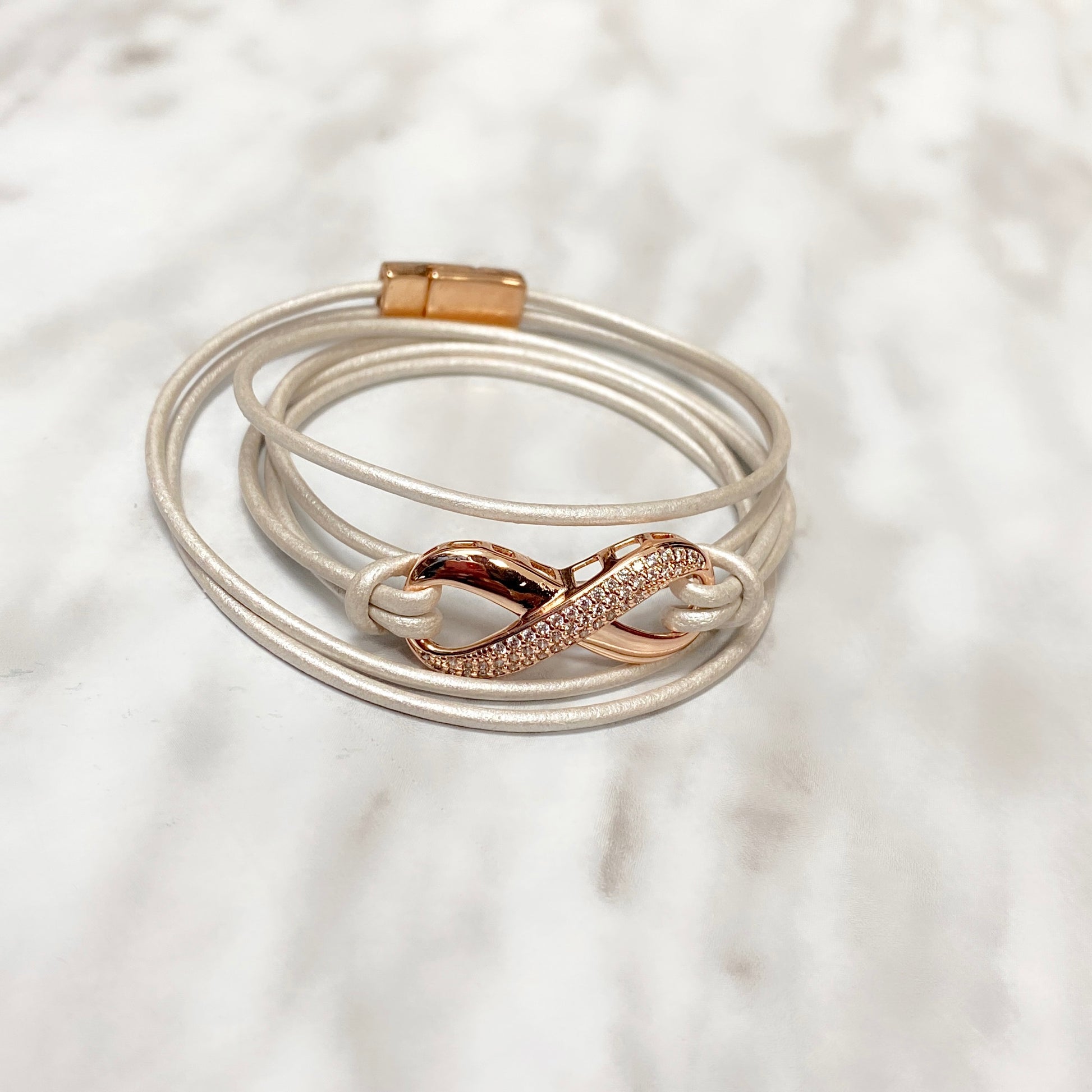 #4 leather wrap around with brass infinity with cubic zirconia and magnetic clasp