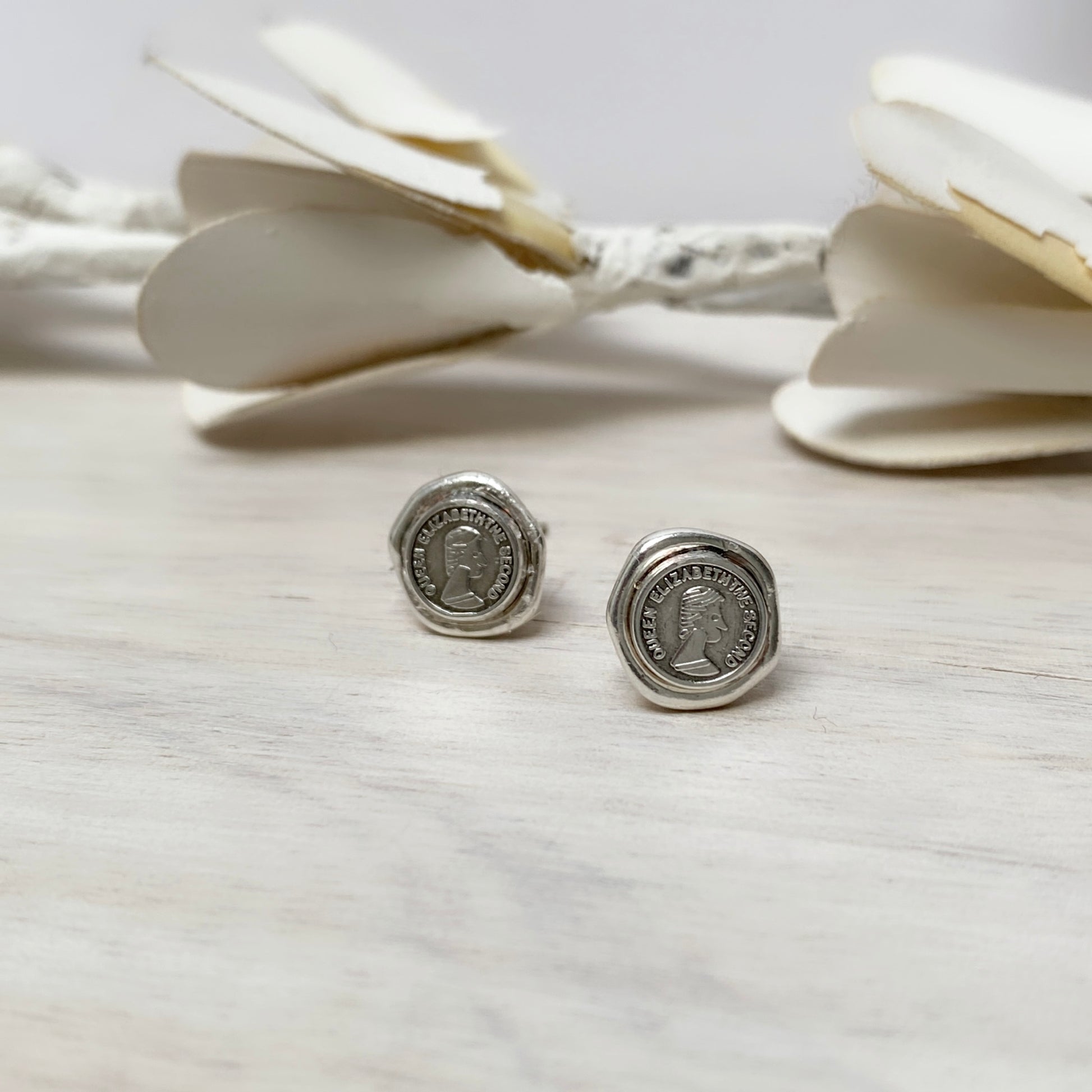 Silver plated coin earrings