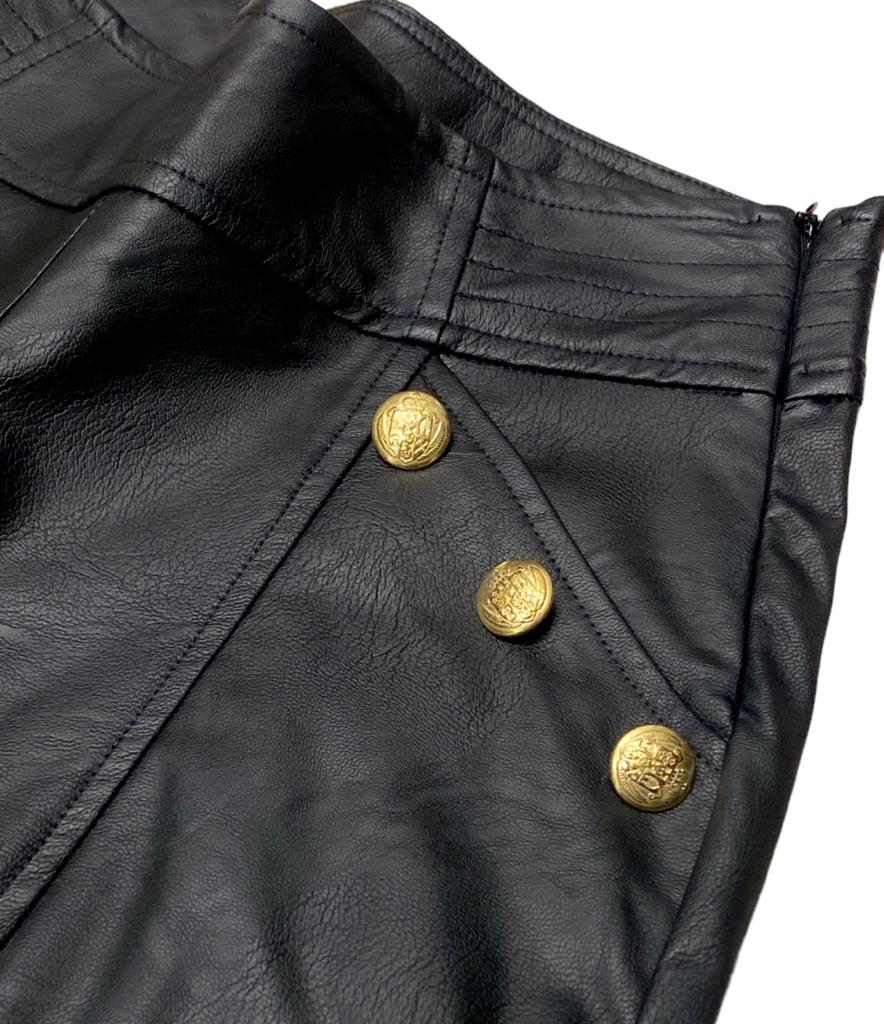 Boot cut vegan leather trousers with gold buttons