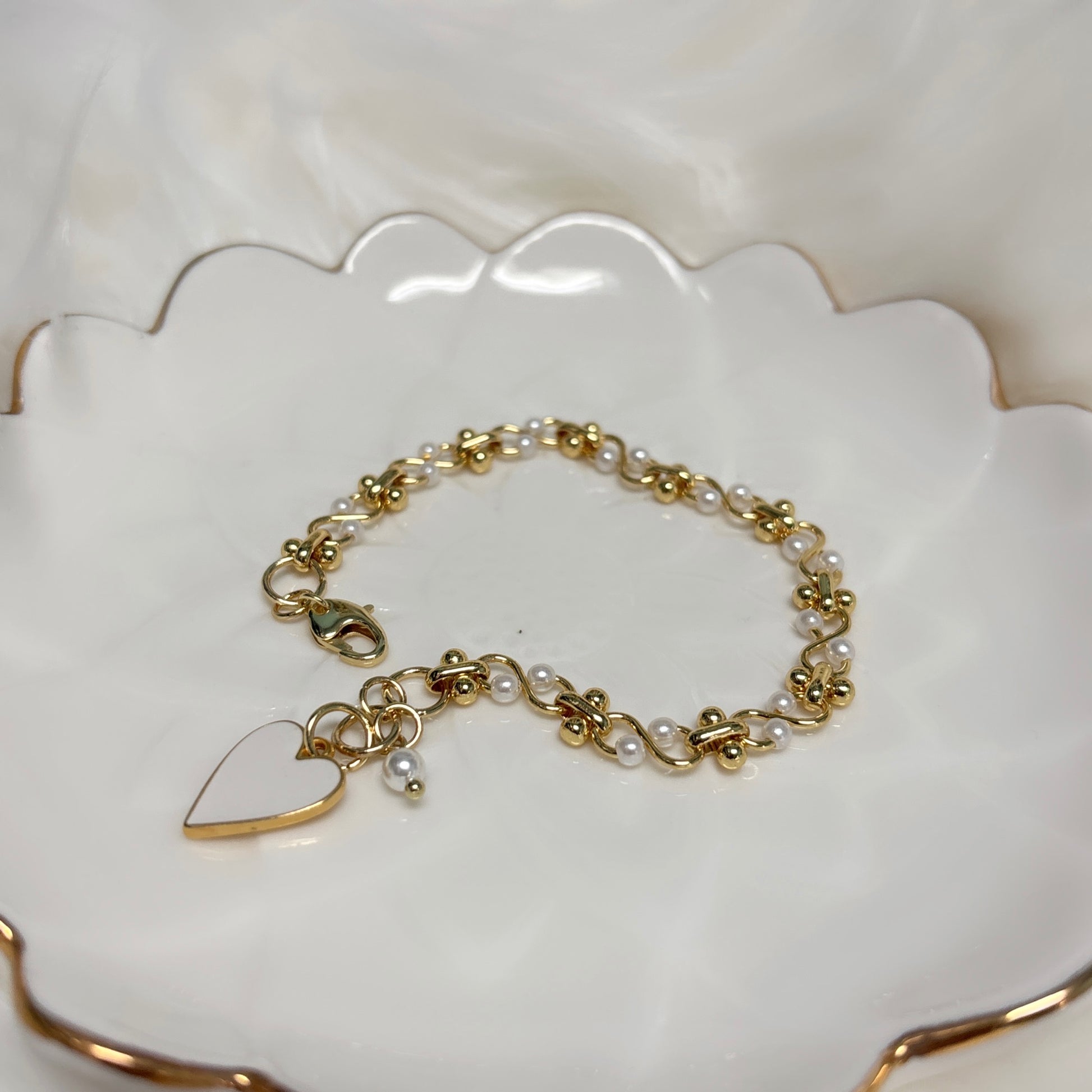 #3 Brass chain with pearls and heart
