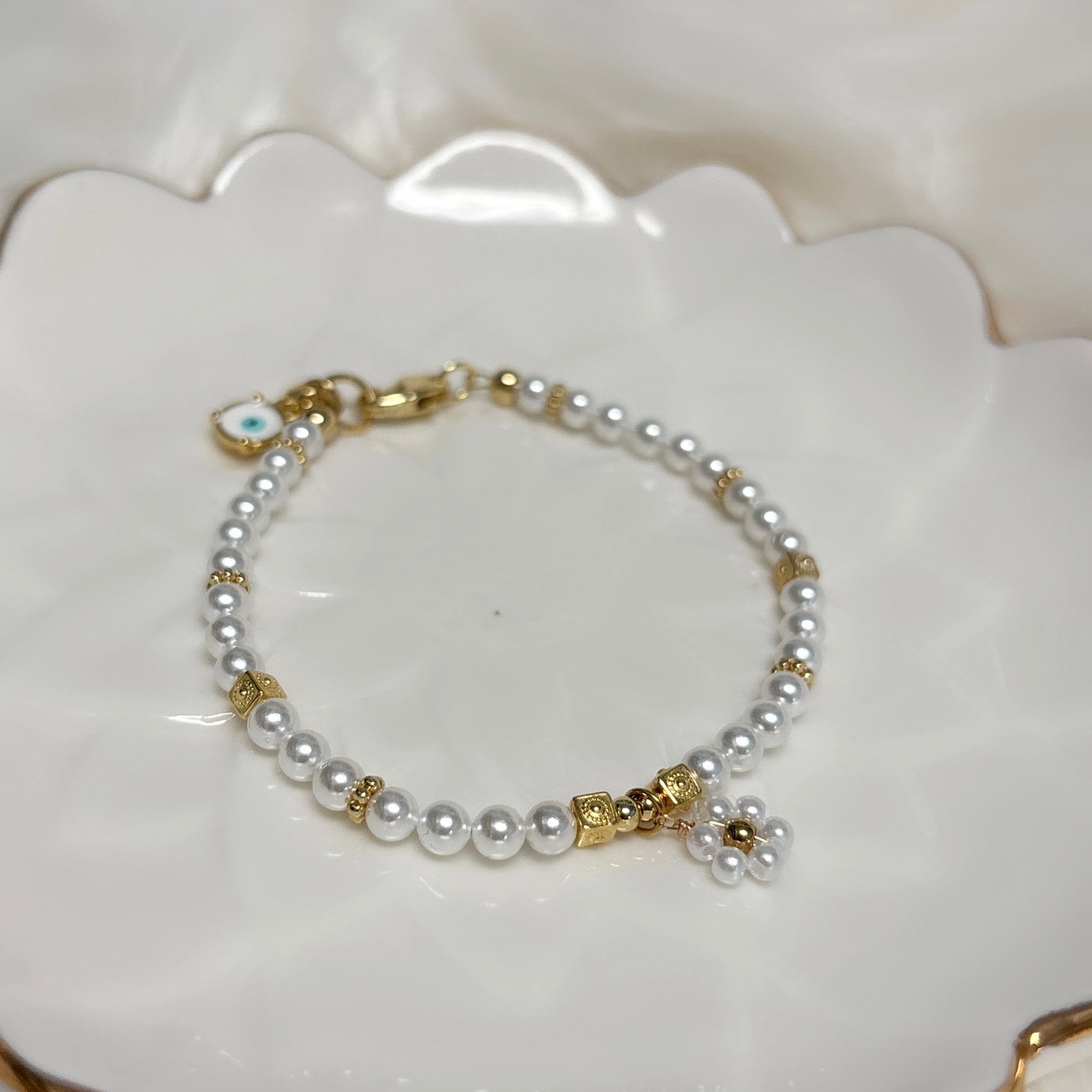 #6 Pearls with flower and eye charm
