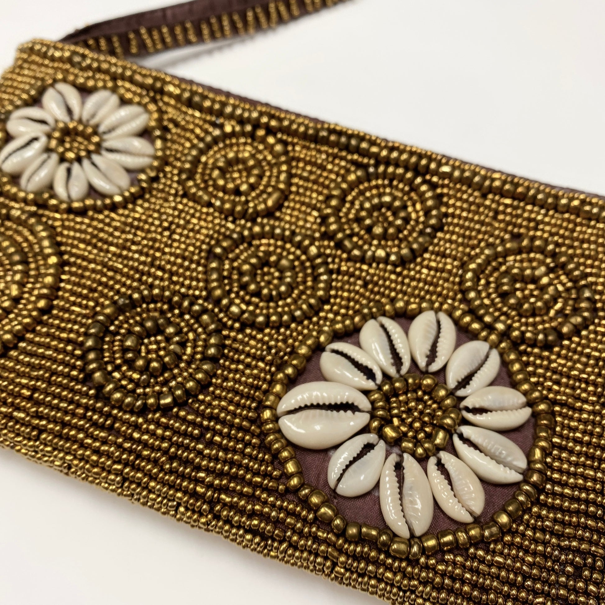 Beautiful handmade small clutch with shell flower shapes in bronze