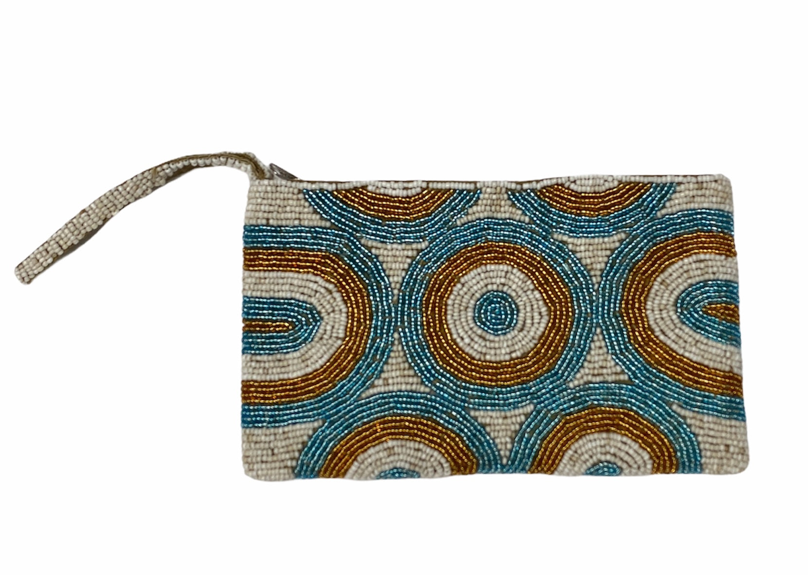 MATAKIA BEADED WALLET-CLUTCH - BLUE BROWN