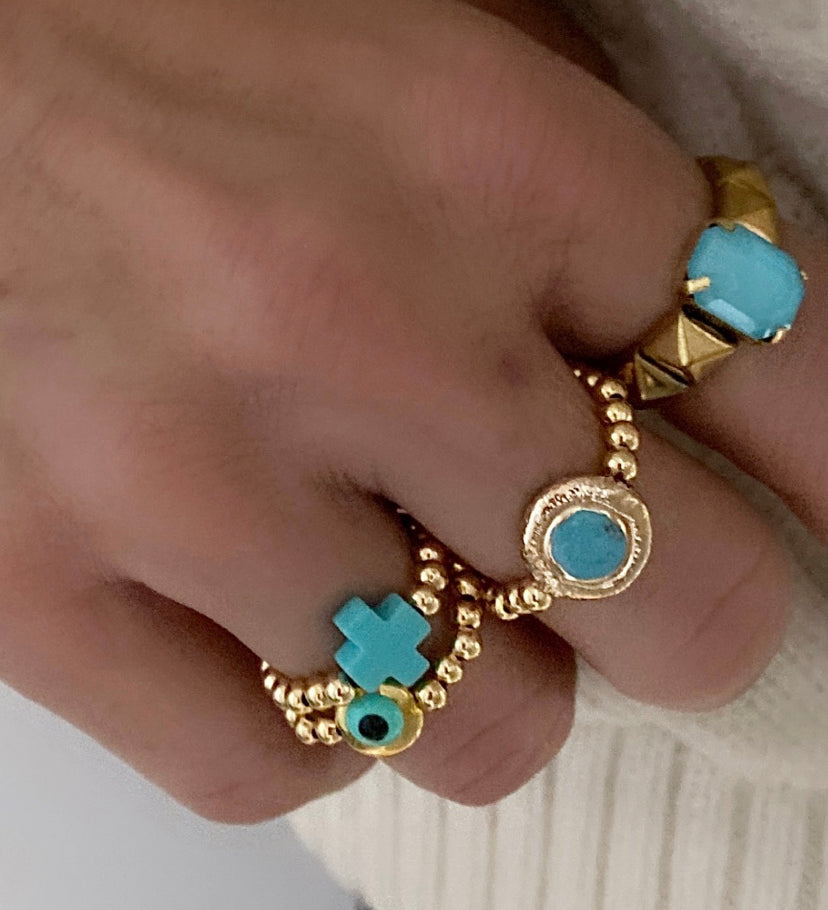 #3 turquoise stone with gold plating all around and small gold plated hematite beads- stretch