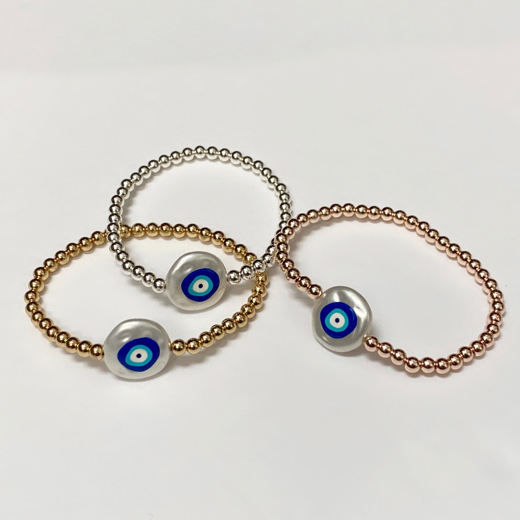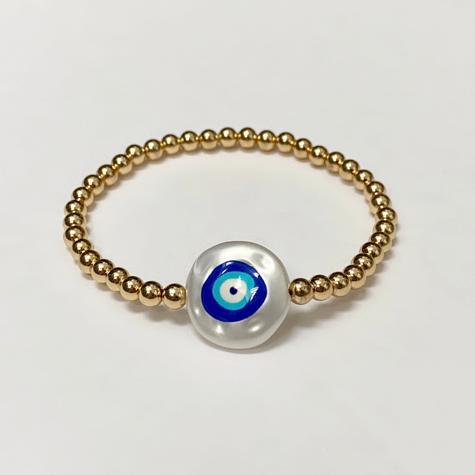 #2 Hematite gold plated 4mm bead with faux pearl eye (stretch),