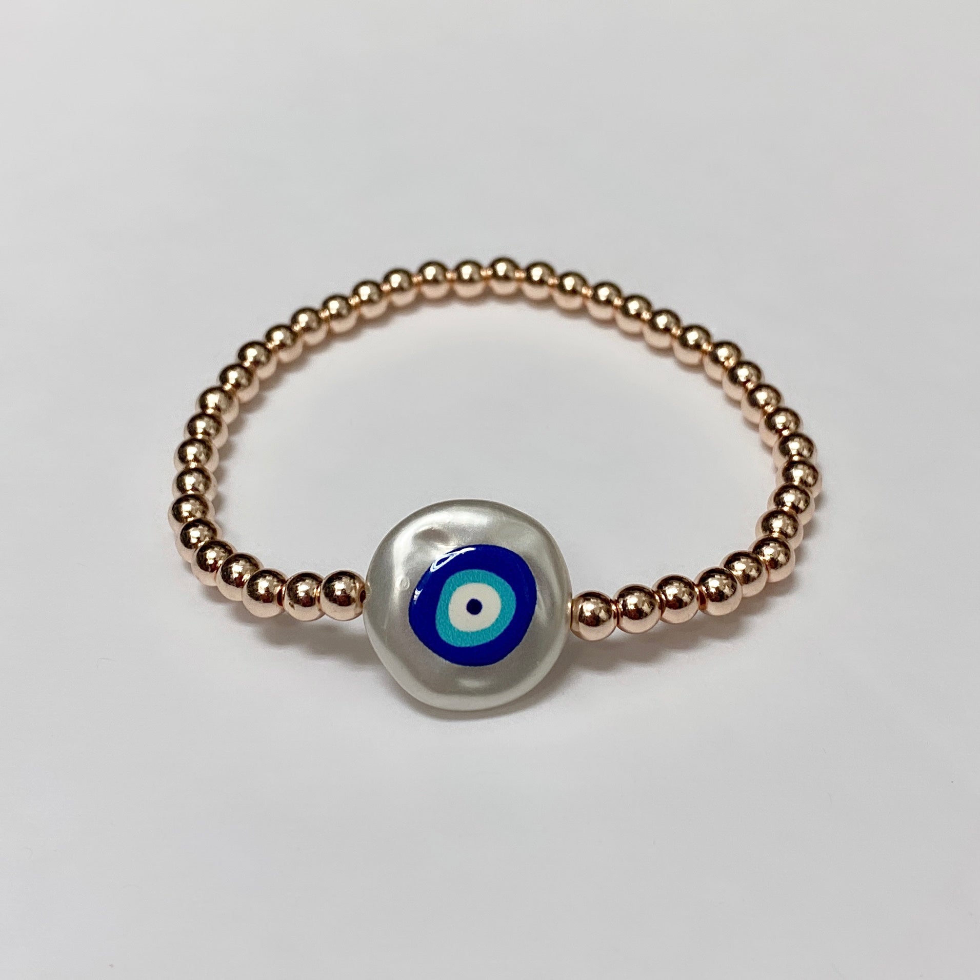 #3 Hematite rose gold plated 4mm bead with faux pearl eye (stretch),