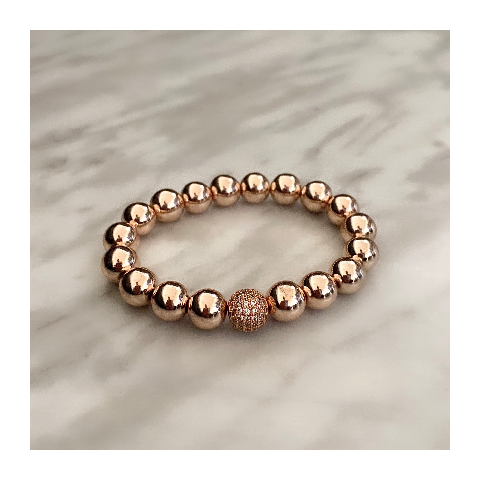 #4 Rose gold plated hematite beads 10mm & cz center bead (stretch),