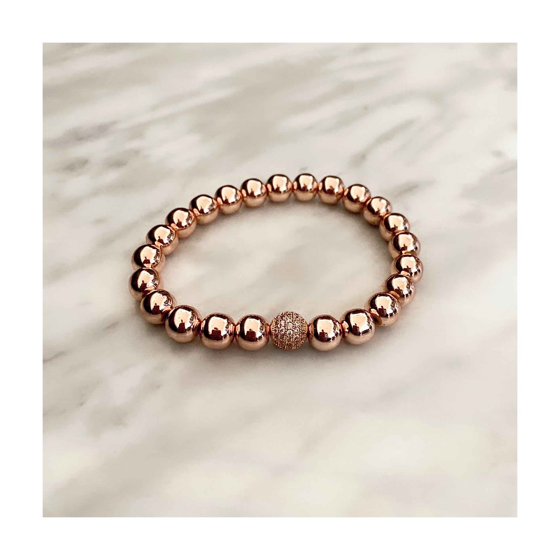 #2 Rose gold plated hematite beads 8mm & cz center bead (stretch),