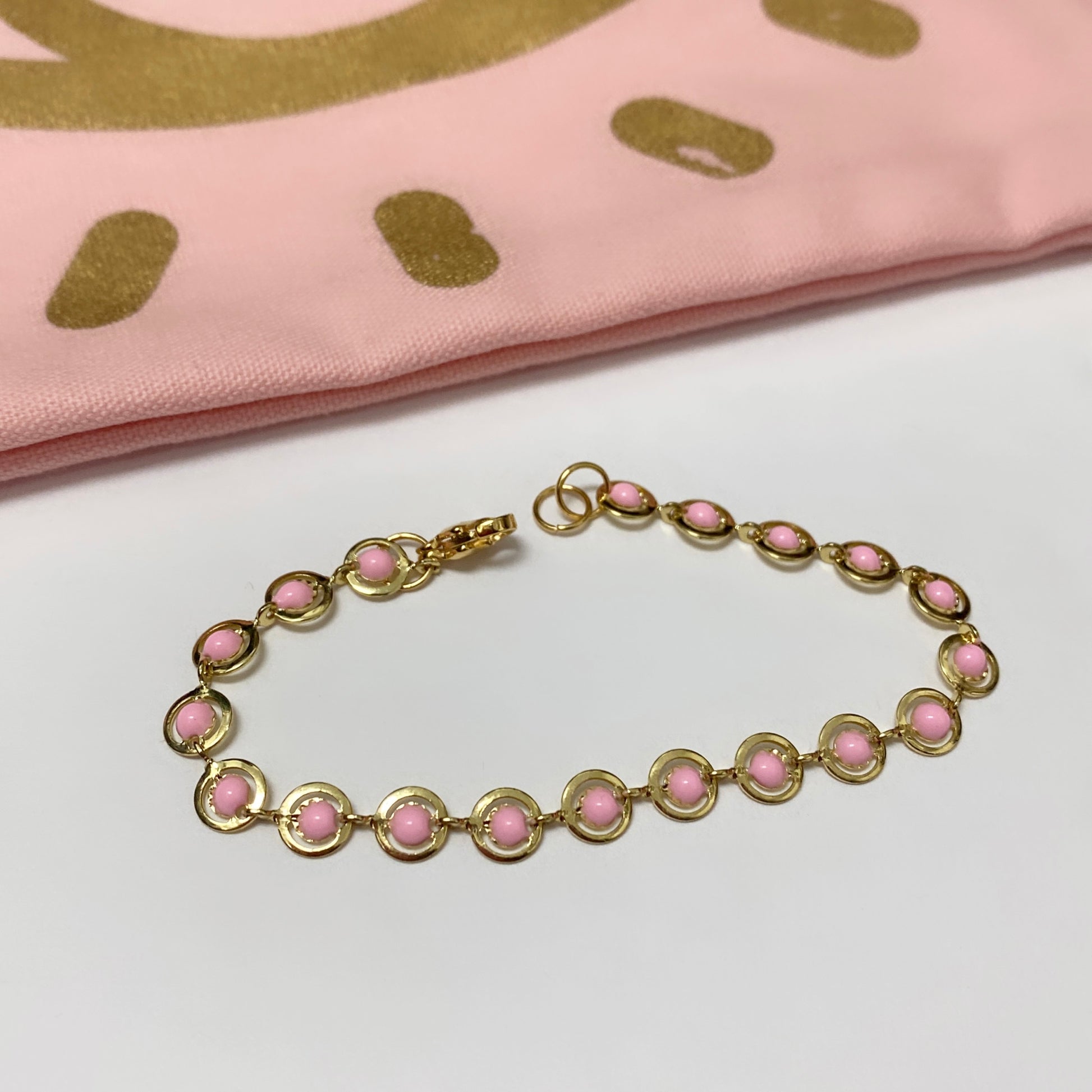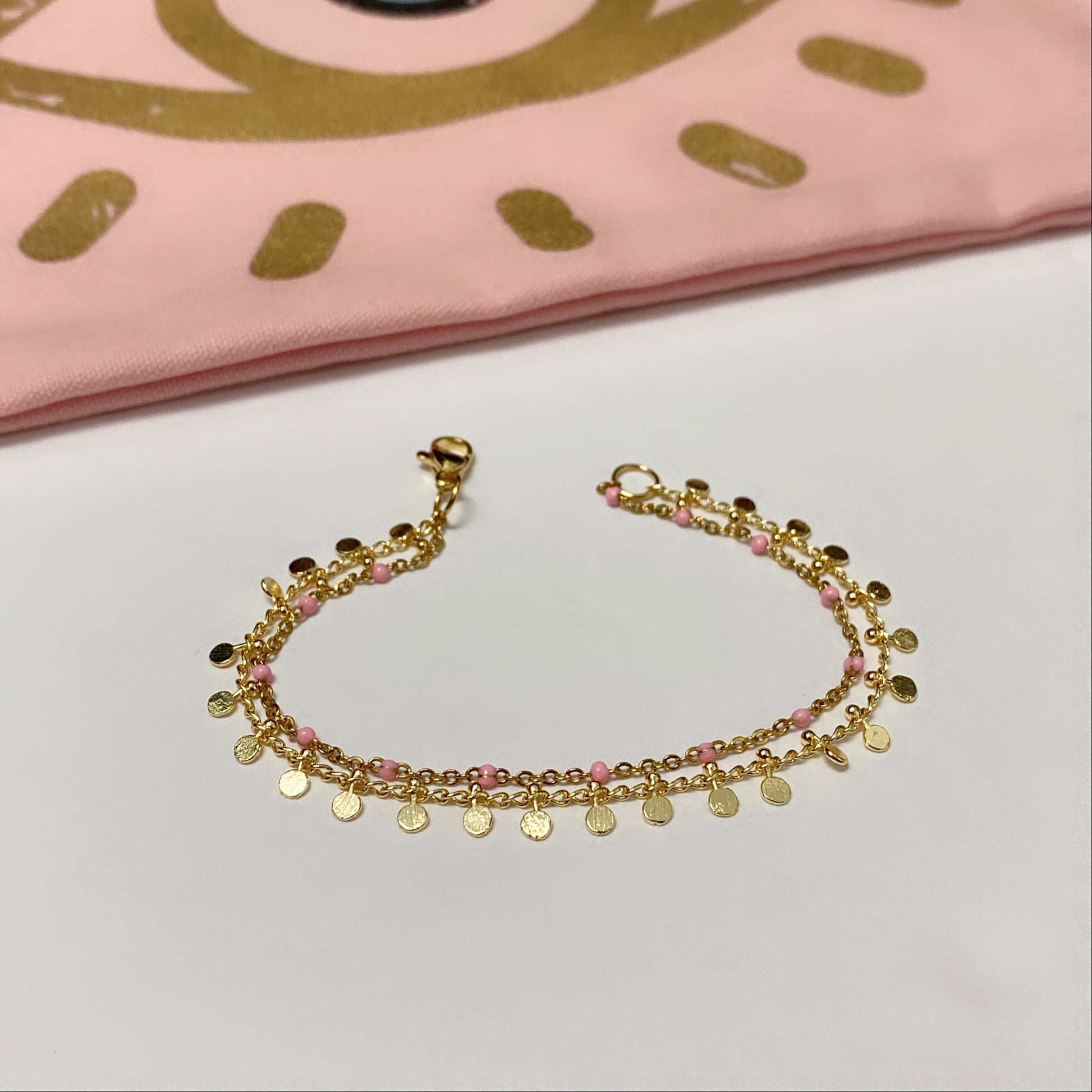 #5 Two row brass and stainless gold plated chain with enamel with extension (lobster clasp closure),