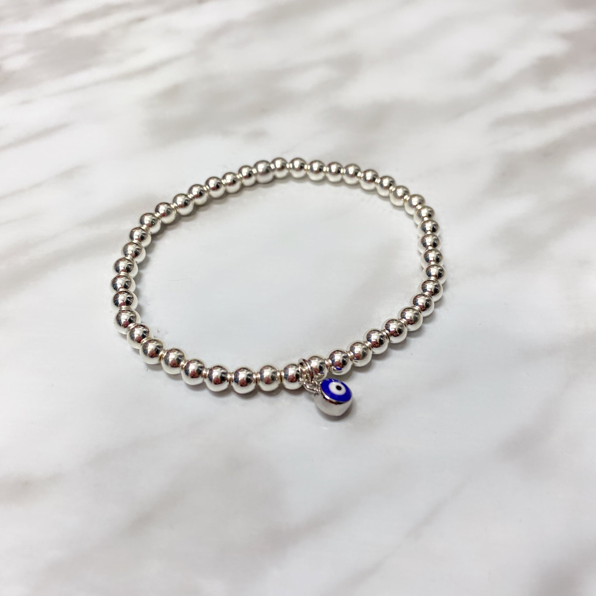 Hematite silver plated 3-4mm beads with dangling enamel eye (stretch)