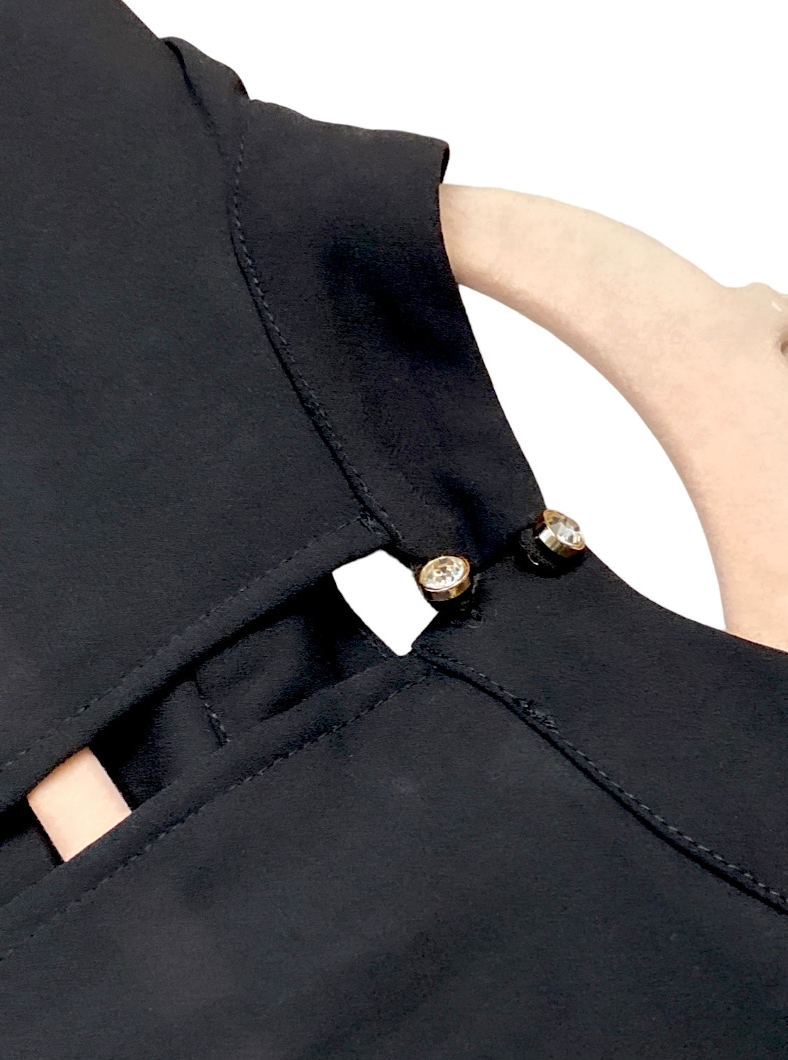 High round collar blouse with 2 buttons on the collar. Slightly see through fabric