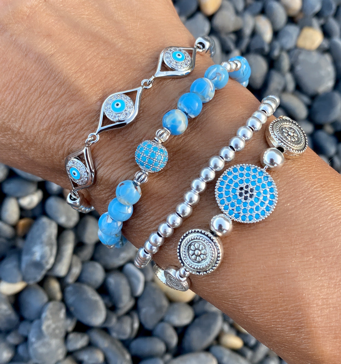 #1 Silver plated beads with 3 cz eye links (stretch)