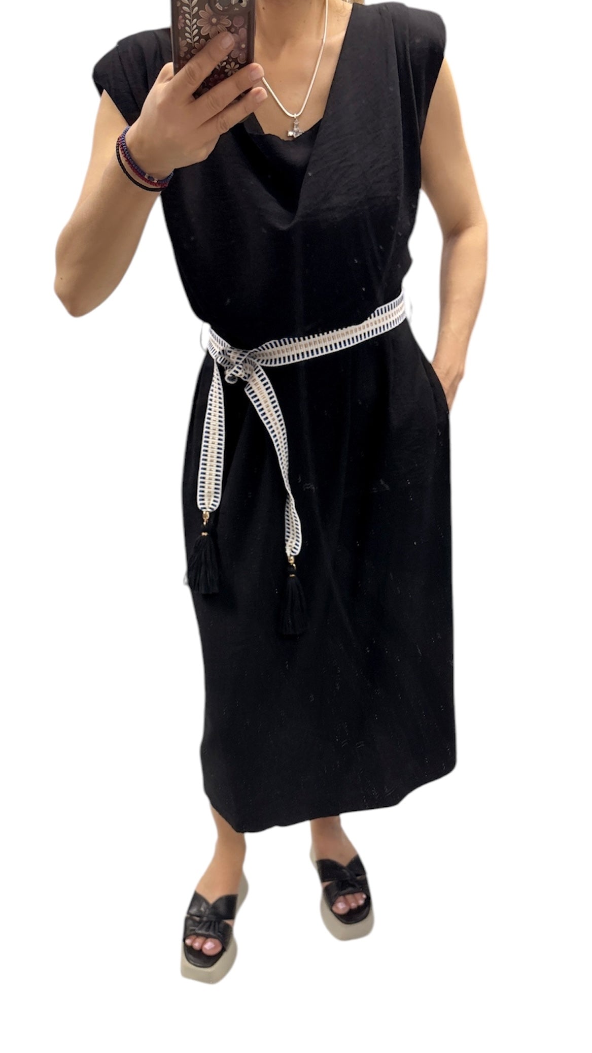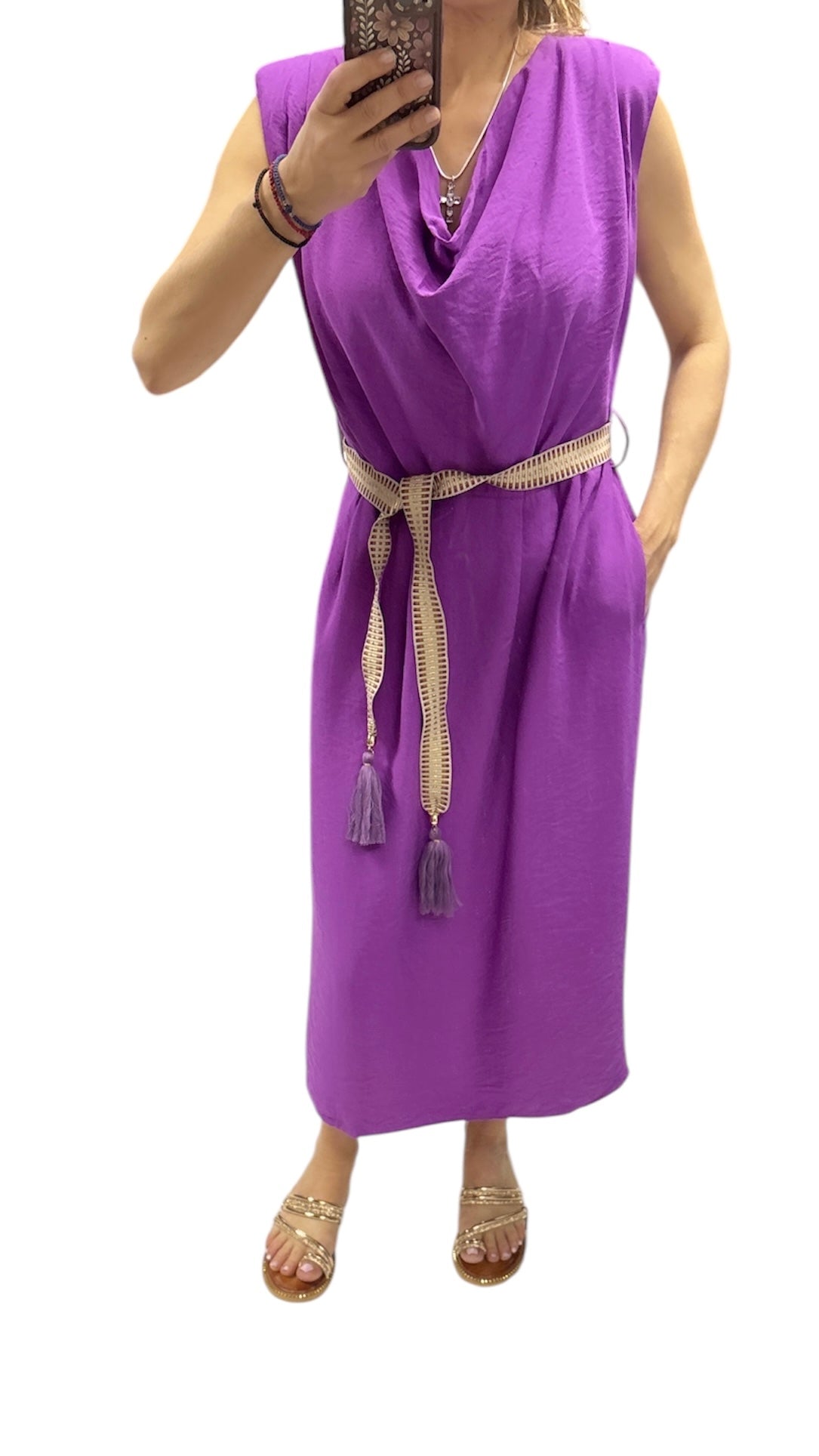 Elevate your summer wardrobe with our Sunday Dress. Crafted from premium fabric, this midi dress features a chic cowl neck and a flattering belt with pockets. Stay cool and stylish in our light and fresh design, available in classic black or vibrant magenta. Perfect for any occasion.