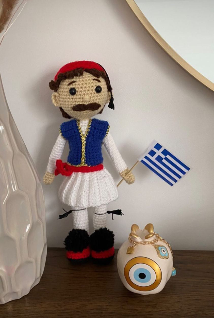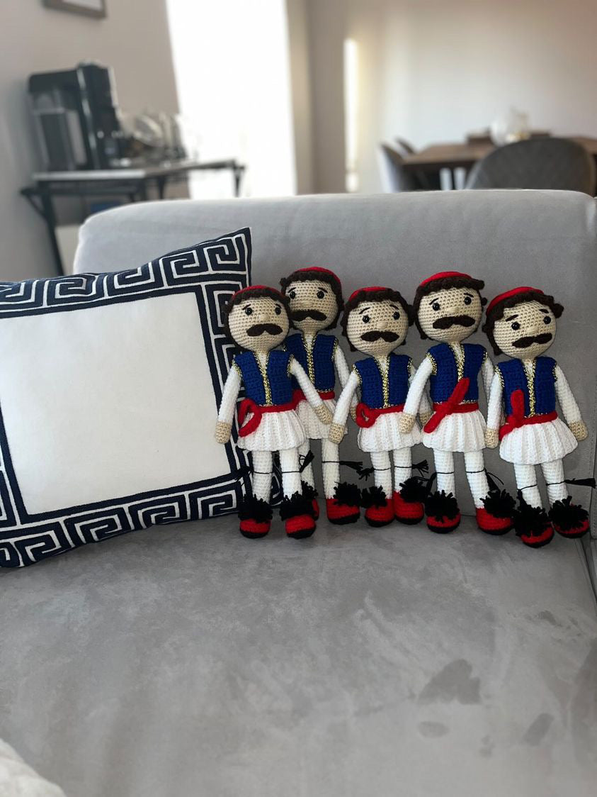 Beautifully handmade crochet tsolia doll with great attention to detail, a perfect gift to keep the greek heritage alive. Handmade in Montreal, from a local artist, takes about 3 days to complete one doll.